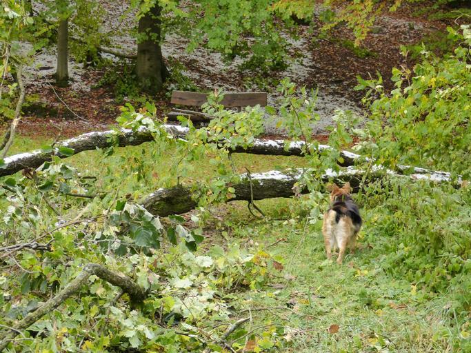 Keywords: forest tree destroyed damaged nature landscape devastation damage forward dog winter snow
