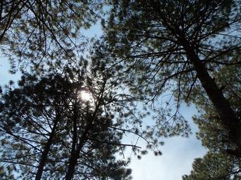 Keywords: forest tree pine trees path autumn hiking park nature wood ecology natural landscape leaves brown green sunset contaluz sky light blue clouds peaceful field backlight sun serenity relaxation vallecas mountain horizon