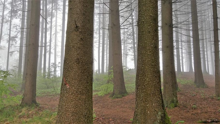 Keywords: forest trees fog nature mood landscape mysterious atmosphere