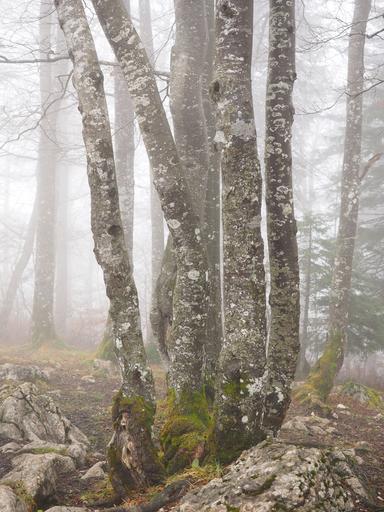 Keywords: forest trees tree trunks book foggy haunting mystical beech wood weather book creux du van swiss jura noiraigue