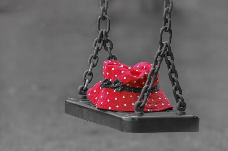 Keywords: forgotten hat red swing playground fashion polka dots child seasons summer