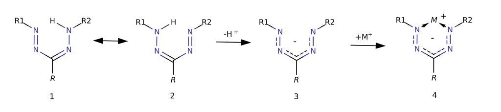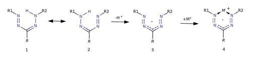 Keywords: Formazan.Tautomerism.svg en Formazan tautomerism deprotonation and chelation ru Фо мазаны таутоме ия деп отони ование и хелати ование uk Фо мазани таутоме ия деп отонування та хелатування own Kurgus 2011-06-26 Cc-zero Formazans Tautomerism Chelating agents