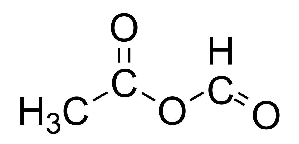Keywords: Formic acetic anhydride.svg Chemical structure of formic acetic anhydride Own 21 38 6 January 2011 UTC Ed Edgar181 Carboxylic anhydrides Formate esters Acetate esters