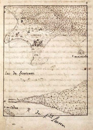 | Keywords: Fort Frontenac 1682.jpg en Lac de Frontenac et Source du Saint-Laurent Map by Jean-Baptiste Minet in 1682 depicting the location of Fort Frontenac at what is now Kingston Ontario top is west Taken from his journal Minet was an engineer who accompanied René-Robert Cavelier de La Salle on his explorations Key reads A Fort Frontenac; B The Récolets; C French dwellings; D Iroquois village; E Shore of Lake Frontenac; F Head of St Lawrence River; G Spring R7971-0-7-F 2395451 Map location pg 9/item 9 Minet Jean-Baptiste 1682 PD-old-100 Uploaded with UploadWizard Historic maps of Ontario Kingston Ontario in the 17th century Ontario in the 1680s Fort Frontenac French language maps of Canada |