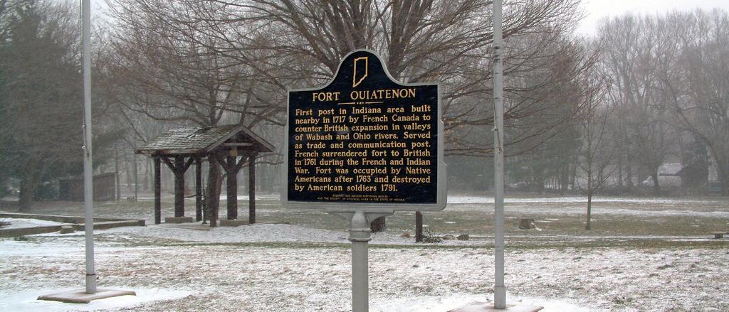 | Keywords: Fort Ouiatenon marker.png 40 24 23 3 N 86 57 47 9 W region US-IN_heading SE The historical marker at Fort Ouiatenon in Tippecanoe County Indiana It reads <blockquote> Fort Ouiatenon<br /> First post in Indiana area built nearby in 1717 by French Canada to counter British expansion in valleys of Wabash and Ohio rivers Served as trade and communication post French surrendered fort to British in 1761 during the French and Indian War Fort was occupied by Native Americans after 1763 and destroyed by American soldiers 1791 </blockquote> self-photographed 2007-01-28 Huw Williams Huwmanbeing I release this photo into the public domain Files by User Huwmanbeing 2007 in Indiana Fort Ouiatenon Historical markers in Indiana Landmarks in Indiana Native American culture Winter in Indiana |