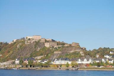 Keywords: fortress ehrenbreitstein fortress view old wall defense water summer blue