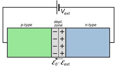 | Keywords: Forward-Biased pn Junction.svg  Diagram of a pn junction under forward bias the resultant electric field <math>\mathcal E _0-\mathcal E _ ext </math> the depletion zone the space charges and the types of semiconductor Own drawing done in Inkscape 2007-02-20 inductiveload Reverse Biased pn Junction PN-junction diagrams |
