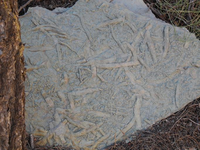 | Keywords: fossils geology paleontology petrified wood tracks trackway national park service nationalparkservice outdoor texture Trace fossils, including worm burrows and trilobite feeding traces (Cruziana) in a block of Bright Angel Shale, Grand Canyon National Park, Arizona. (NPS Photo by Cassi Knight, Paleontology Guest Scientist) Trace fossils, including worm burrows and trilobite feeding traces (Cruziana) in a block of Bright Angel Shale, Grand Canyon National Park, Arizona. (NPS Photo by Cassi Knight, Paleontology Guest Scientist) |