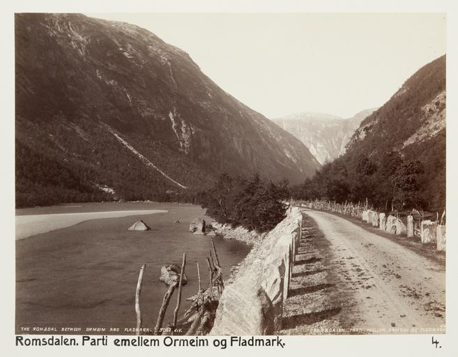 | Keywords: Fotografi av parti mellan Ormeim och Fladmark. Romsdalen, Norge - Hallwylska museet - 105693.tif  LSH artwork sv Parti mellan Ormeim och Fladmark Romsdalen Norge Fotografierna LXVI K J 01 -K J 48 är inköpta av Johanna Kempe f Wallis i Bergen och Kristiania vid hennes vistelse i nämnda städer tillsammans med fröken Caroline Pflaum under deras resa från Trondhjem till Kristiania 20 juli - 6 september 1890 original caption Fotografi av parti mellan Ormeim och Fladmark Romsdalen Norge <br/> Nyckelord Fotografi Norge Romsdal Berg Fjäll Foto Resealbum 1890 paper HWY place of origin Romsdalen NO original filename hm_dig18267 113569 inventory number HWY LXVI K J 04 105693 PD Jenny Bergensten Møre og Romsdal Norway Mountains of Norway Historical photographs of Norway Jenny Bergensten Media contributed by LSH 2016-12 Bild från Johanna Kempe f Wallis resor genom Norge 1890  |