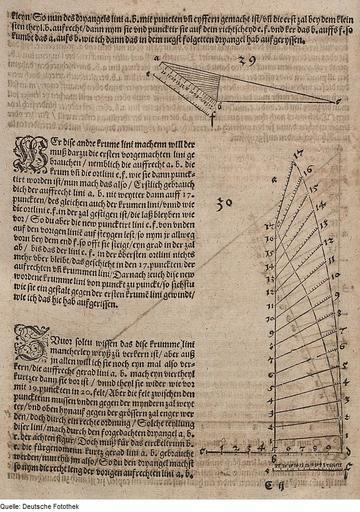 | Keywords: Fotothek df tg 0000670 Geometrie ^ Kurve.jpg Creator Albrecht Dürer Scan Deutsche Fotothek df_tg_0000670 color 2007 MIK-Center Berlin GmbH 88960670 Abbildung Nr 29 und 30 Arnheim Rekursive Punktfolge freihändig zu einer Kurve verbunden Papier Holzschnitt 3 5 x 9 2 cm 16 x 7 1 cm Geometrie Kurve ppn264645545 1604 Druck Deutsche Fotothek gefördert von der Deutschen Forschungsgemeinschaft Projekt Technikgeschichte 16 /17 Jh Verwalter Dresden Sächsische Landesbibliothek - Staats- und Universitätsbibliothek Dresden Art plast 800 misc 1 Herstellung Herstellung Jansen Jan Verleger aus Dürer Albrecht Buch Opera Alberti Dureri Das ist Alle Bücher des weitberühmbten und Künstreichen Mathematici und Mahlers Albrechten Durers von Nürenberg so viel deren von ihm selbst in An 1525 und 1528 kurtz vor und gleich nach seinem todt in Truck geben Nemblich vier von underweisung oder underrichtung der messung mit dem Circkul und Richtscheit in Linien ebenen und gantzen Corporen Item vier von der Proportion deß Menschlichen Corpers und letztlich eins von der Befestigung der Stätt Schlösser und Flecken etc Allen respective Mahlern Steinmetzern Bildthäwern nützlich und nohtwendig Der aller scharffsinnigst Euclides/ hat den grundt der Geometria zusammen gesetzt/ wer den selben wol versteht/ der darff hernach geschrieben ding gar nit/ dann sie sind alleyn den jungen und denen so sonst niemandt haben der sie trewlich underweyst geschryben SLUB Art plast 800 misc 1 Fotothek-License PD-old-100 Opera Alberti Dureri |