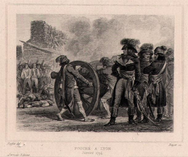 | Keywords: Fouché a Lyon drawn by Raffet 1834.png French Revolution - Fouché - Repression of Lyons Insurgency January 1794 - National Convention Joseph Fouché o Metralhador de Lião executa insurgentes lioneses durante a Revolução Francesa em janeiro de 1794 http //www french-engravings com/product_info php products_id 8139 language en French engravings 1834 Original steel engraving drawn by Raffet engraved by Beyer Chine collé PD-Art Joseph Fouché Lyon in the 18th century | ||||