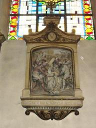 Keywords: Foug (Meurthe-et-Moselle) Église Saint-Etienne chemin de croix station 05.JPG fr Foug Meurthe-et-Moselle Église Saint-Etienne chemin de croix station 05 2015-08-13 own Havang nl other versions 48 684753305556 5 7879663611111 heading 336 5 cc-zero L'été des villes Chemin de croix de l'église Saint-Etienne de Foug Uploaded with UploadWizard Station 5 Simon of Cyrene carries the cross |