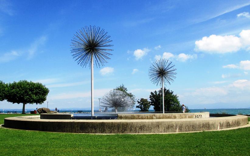 Keywords: fountain asco fountain beautiful water grass trees sky romanshorn lake constance switzerland