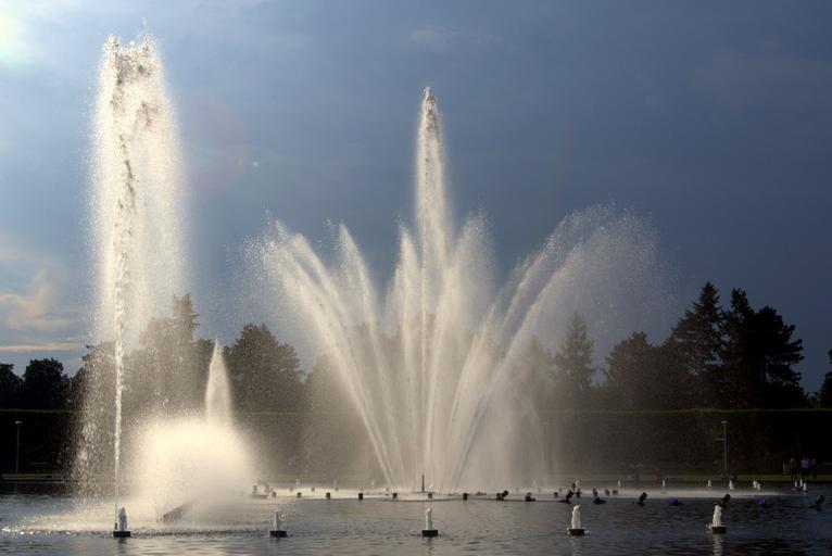 Keywords: fountain cascade water streams enormous great rest garden park blue heat coolness summer view