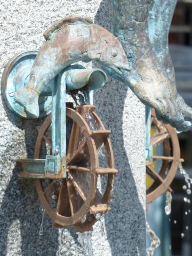 Keywords: fountain freilassing downtown pedestrian zone sculpture fish waterwheel water feature