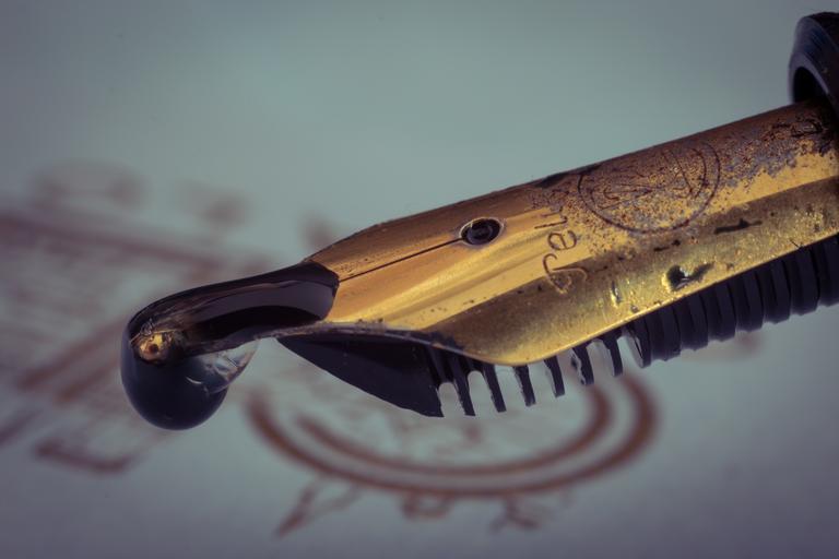 Keywords: fountain pens fountain pen filler ink leave letters nostalgic handwritten writing tool noble gold paper macro