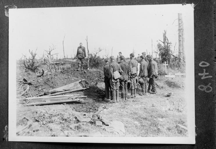 Keywords: the great war thegreatwar great war greatwar world war i worldwari world war one worldwarone the first world war thefirstworldwar wwi ww1 war grave wargrave soldiers soldier blackandwhite photo border monochrome outdoor serene black and white Four photographs of New Zealand soldiers in France during World War I. Top left (H838) shows soldiers putting fresh vegetables into ration bags at 2M Stores of a Wellington Regiment, Gommecourt, 28th of July 1918. Top right (H837) shows soldiers receiving their pay, Gommecourt, 1918. Bottom left (H832) shows a formal group portrait of a New Zealand Rifle Brigade raiding party with their captured weapons which include 13 machine guns photographed on the 28th of July 1918. Bottom right (H840) shows soldiers lined up at the graves of soldiers from Otago who were killed in a raid. Photographed at Gommecourt on the 26th of July 1918. Photographed by an unknown photographer in July 1918. Quantity: 1 b&w original negative(s). Physical Description: Glass negative Finding Aids: Prints in Photograph Archive in War History Album PA1-f-094, print numbers H832, H837, H838, and H840.. Four photographs of New Zealand soldiers in France, World War 1. Royal New Zealand Returned and Services' Association :New Zealand official negatives, World War 1914-1918. Ref: 1/1-002074-G. Alexander Turnbull Library, Wellington, New Zealand. natlib.govt.nz/records/22782657 Four photographs of New Zealand soldiers in France during World War I. Top left (H838) shows soldiers putting fresh vegetables into ration bags at 2M Stores of a Wellington Regiment, Gommecourt, 28th of July 1918. Top right (H837) shows soldiers receiving their pay, Gommecourt, 1918. Bottom left (H832) shows a formal group portrait of a New Zealand Rifle Brigade raiding party with their captured weapons which include 13 machine guns photographed on the 28th of July 1918. Bottom right (H840) shows soldiers lined up at the graves of soldiers from Otago who were killed in a raid. Photographed at Gommecourt on the 26th of July 1918. Photographed by an unknown photographer in July 1918. Quantity: 1 b&w original negative(s). Physical Description: Glass negative Finding Aids: Prints in Photograph Archive in War History Album PA1-f-094, print numbers H832, H837, H838, and H840.. Four photographs of New Zealand soldiers in France, World War 1. Royal New Zealand Returned and Services' Association :New Zealand official negatives, World War 1914-1918. Ref: 1/1-002074-G. Alexander Turnbull Library, Wellington, New Zealand. natlib.govt.nz/records/22782657
