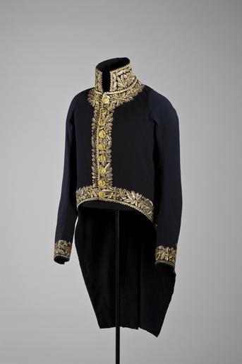 Keywords: Frack, fransk marskalkuniform, Jean Baptiste Bernadotte - Livrustkammaren - 86920.tif Frack av mörkblått kläde med guldbroderier i form av eklöv och ekollon Knappar med korslagda marskalksstavar omgivna av en lager och en eklövsranka <br/><br/>Nordiska museet nr 81 317 deposition 1940-09-12 utställd fack Y vänster hörnmonter vid pelaren Inköpt på Christian Hammers auktion i Köln 1895 för46 - Fracken har uppenbarligen utsatts för stark nötning och bl a fått armarna omsydda original caption Frack fransk marskalkuniform Jean Baptiste Bernadotte LRK 25568<br/> Nyckelord Frack Uniformer Marskalkuniform Dräkt Guld Fransk Karl XIV Johan Föremålsbild early other date century 19 size mm 1170 LRK Jean Baptiste Bernadotte Karl XIV Johan prins Karl XIV Johan 1764- Pau Frankrike Karl XIV Johan av Sverige-Norge Karl XIV Johan och Örebro 1989 Bernadotter i politik o kulturliv 1991 Bernadotter i bild 1992 1805 l'année d'Austerlitz 2005 Härskarkonst Napoleon - Karl Johan - Alexander 2010-2011 Nationalmuseum Stockholm Härskarkonst Napoleon - Karl Johan - Alexander 2010 arb titel Härskarkonst Napoleon - Karl Johan - Alexander 2011 Meeting of Suzerains arb titel Härskarkonst Napoleon - Karl Johan - Alexander 2011 Hermitage Museum place of origin original filename lm_dig6538_25568 62132 inventory number LRK 25568 86920 CC-BY-SA Matti Östling <gallery caption Different images of same object > File Frack till fransk marskalksuniform som tillhört Karl XIV Johan 1763-1844 som fransk marskalk 1804-1810 - Livrustkammaren - 52759 tif File Frack till fransk marskalksuniform som tillhört Karl XIV Johan 1763-1844 som fransk marskalk 1804-1810 - Livrustkammaren - 9289 tif </gallery> Matti Östling Uniforms Uniforms in Livrustkammaren Gold Media contributed by LSH unmatched objKeyword Media contributed by LSH unmatched keyword Color images from Livrustkammaren Media contributed by LSH 2013-10