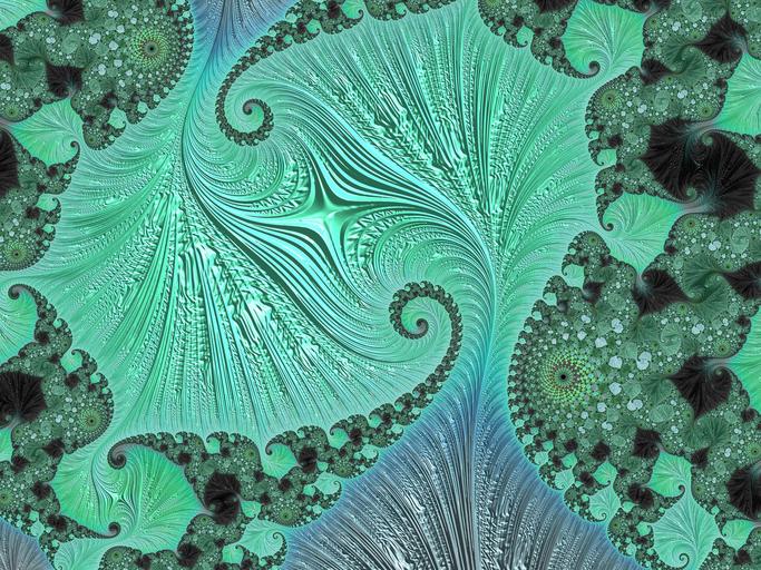 Keywords: fractal artwork fan shape art fractal ornamental pattern curly symmetric shape fantasy scientific futuristic spiral science swirl lace unique curve decoration artwork design texture turquoise blue