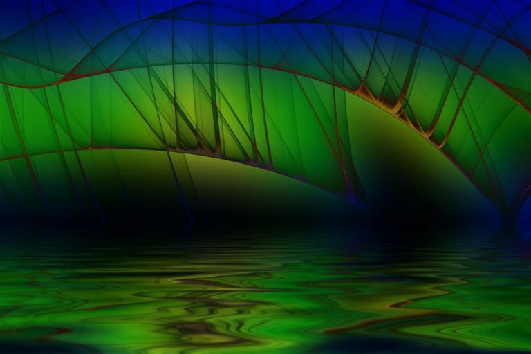 Keywords: fractal digital art computer graphic colorful shiny reflection rippling water artwork surreal filigreeing abstract wallpaper