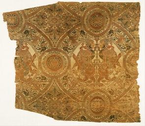 Keywords: Fragment with wrestling lions and harpies - Google Art Project.jpg 505005 Unknown /collection/museum-of-fine-arts-boston/artwork/fragment-with-wrestling-lions-and-harpies-unknown/561040/ author /collection/museum-of-fine-arts-boston/ Museum of Fine Arts Boston 509114 http //www mfa org/ 12/17/2011 11 00 32 AM /collection/museum-of-fine-arts-boston/artwork/fragment-with-wrestling-lions-and-harpies-unknown/561040/ 1101 early 12th century probably Almería Southern Spain Almohad Silk lampas with supplementary discontinuous metal-wrapped patterning wefts 500 561040 False 1150 early 12th century 3/24/2012 4 07 52 AM 33 371 http //www mfa org/collections/object/fragment-with-wrestling-lions-and-harpies-66254 Ellen Page Hall Fund Museum of Fine Arts Boston All Rights Reserved Textiles 1100 1160 w430 x h500 mm early 12th century False 1 15056179775281 Object fragment-with-wrestling-lions-and-harpies-unknown Fragment with wrestling lions and harpies f 430 City _state _country probably Almería Southern Spain Silk lampas with supplementary discontinuous metal-wrapped patterning wefts Period _era _dynasty _reign Almohad special url_id pwF_il6Dwiuvng PD-old-100 Google Art Project works by unknown artist Almoravid dynasty 12th-century textiles Tapestries in the Museum of Fine Arts Boston