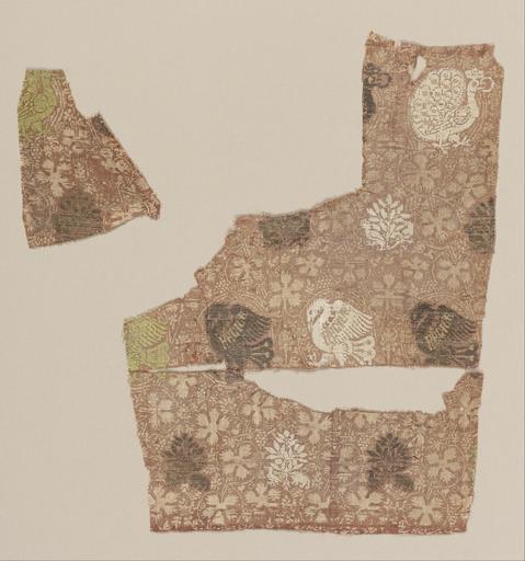 Keywords: Fragments - Google Art Project (4174626).jpg 6938587 Unknown /collection/cooper-hewitt-national-design-museum/artwork/fragments-unknown/4174626/ 11413 author /collection/cooper-hewitt-national-design-museum/ Cooper-Hewitt National Design Museum 3644669 http //www cooperhewitt org/ /collection/cooper-hewitt-national-design-museum/artwork/fragments-unknown/4174626/ 1300 14th century Medium silk metallic threadsTechnique two interconnected plain weave structures lampas with discontinuous supplementary weft patterning brocade ex-collection Francisco Miquel y BadÃa 4174626 False 1400 1902-1-258-a/e http //collection cooperhewitt org/view/objects/asitem/id/11413 Gift of John Pierpont Morgan Fragments 1300 1410 14th century False 0 935546875 Object fragments-unknown Fragments f Warp x Weft a 31 3 x 28 cm 12 5/16 x 11 in Warp x Weft b 15 2 x 33 3 cm 6 x 13 1/8 in Warp x Weft c 16 6 x 13 cm 6 9/16 x 5 1/8 in Warp x Weft d 7 2 x 8 8 cm 2 13/16 x 3 7/16 in Warp x Weft e 6 8 x 8 1 cm 2 11/16 x 3 3/16 in Medium silk metallic threadsTechnique two interconnected plain weave structures lampas with discontinuous supplementary weft patterning brocade ex-collection Francisco Miquel y BadÃa special url_id nQEe4mOELBhFQA PD-old-100 Google Art Project works by unknown artist Textiles in the Cooper “Hewitt Smithsonian Design Museum Google Art Project works in Cooper-Hewitt Smithsonian Design Museum 14th-century textiles |