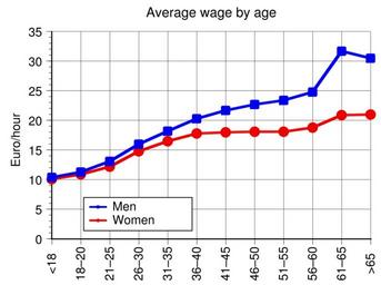 | Keywords: France average hourly wage by age and sex.svg en Average hourly wage in France by age and sex for 2013 Data source http //www insee fr/fr/themes/detail asp reg_id 0 ref_id ir-irsocdads2013 T101 2016-05-28 own Delphi234 other versions Generated with Wikimedia SVG Chart SVG Chart/box cc-zero Income distribution in France |