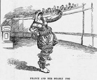 Keywords: France and Her Deadly Foe - JM Staniforth.png en Political carton by JM Staniforth The Personification of France Marianne struggles in an arena with a python representing the Dreyfus Affair while other nations look on as the crowd http //papuraunewyddcymru llgc org uk/en/page/view/3281510 Evening Express Joseph Morewood Staniforth 1898-12-14 Cartoons by Joseph Morewood Staniforth Political cartoons of the United Kingdom 1890s political cartoons 1898 in France Dreyfus affair Caricature of Marianne John Bull Uncle Sam Snakes in art Clogs in art PD-old-70-1923
