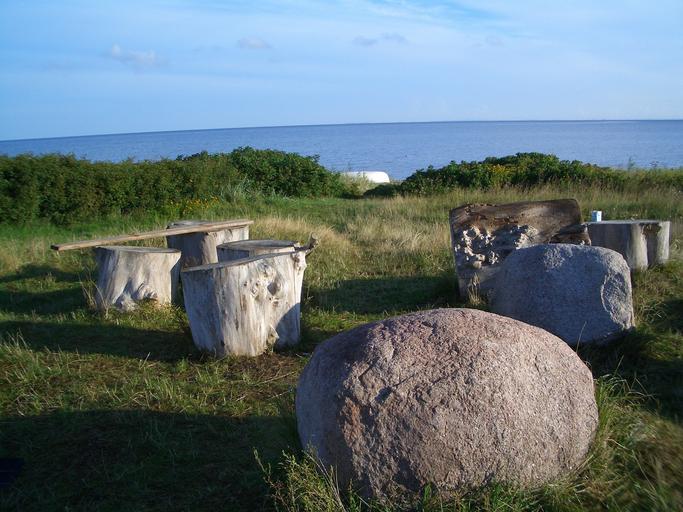 Keywords: france landscape rocks grass trees sky clouds sea ocean water scenic boulders log wood nature outside country countryside rural spring summer