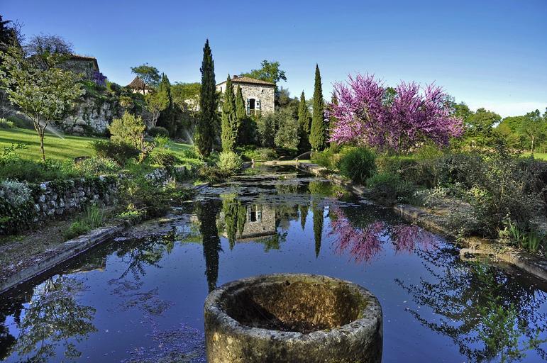Keywords: france summer spring garden flowers plants pond water reflections buildings trees sky clouds nature outside beautiful
