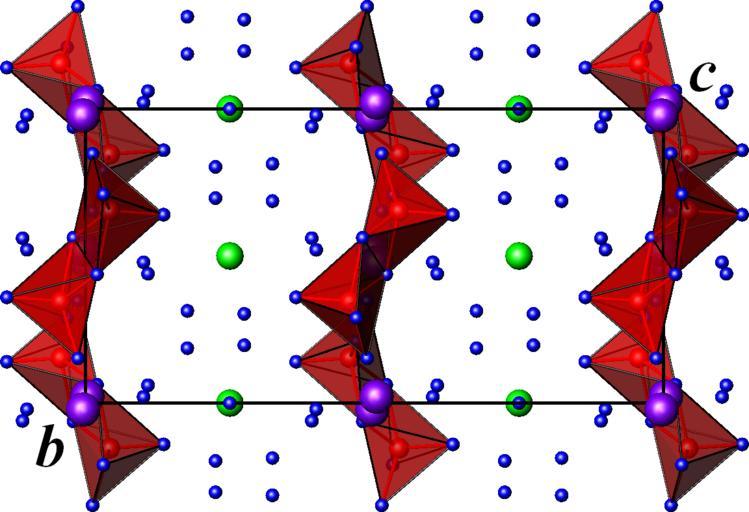 | Keywords: Francevillite bc.png en Crystal structure of francevillite Ba Pb UO<sub>2</sub> <sub>2</sub> VO<sub>4</sub> <sub>2</sub> 5H<sub>2</sub>O Pcan projected onto the b c plane Red vanadium purple uranium green barium lead blue oxygen The hydrogen atoms are not represented Data source K Mereiter 1986 Crystal structure refinement of two francevillites Ba Pb UO2 2 VO4 2·5H2 Neues Jahrbuch für Mineralogie Monatshefte 552-560 own Perditax 2011-04-01 Cc-zero Francevillite Crystal structures of vanadium compounds |