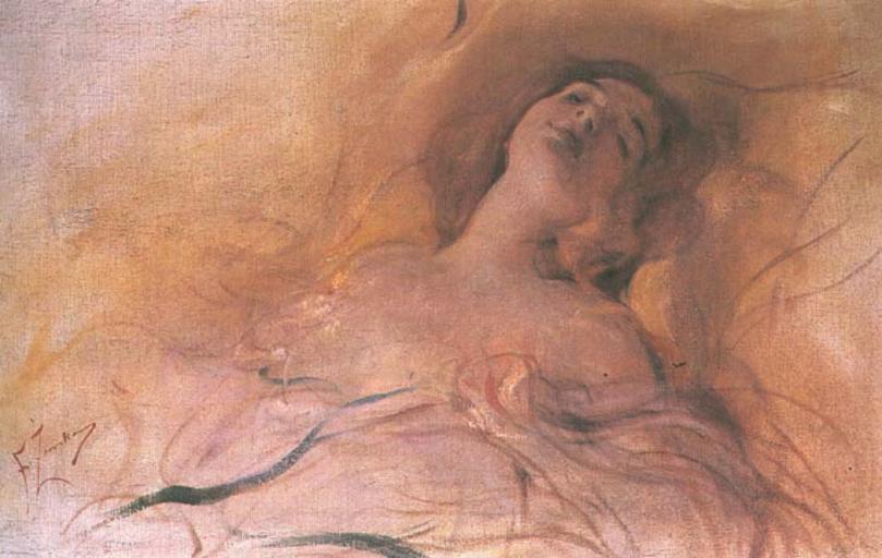 Keywords: Franciszek Zmurko - In delightful dream.jpg W rozkosznym śnie en In delightful dream oil on canvas 63 x 99 cm Sold by Dom Aukcyjny AGRA ART on 1995-03-12 for 11500zł 4811 http //www agraart pl/cgi-bin/obiekt cgi act 1 qt 1158664341 nr 1786 - Franciszek Żmurko Copyright expired PD-old-100 Creator Franciszek Żmurko Sleeping in art Sleeping women in art Franciszek Żmurko |