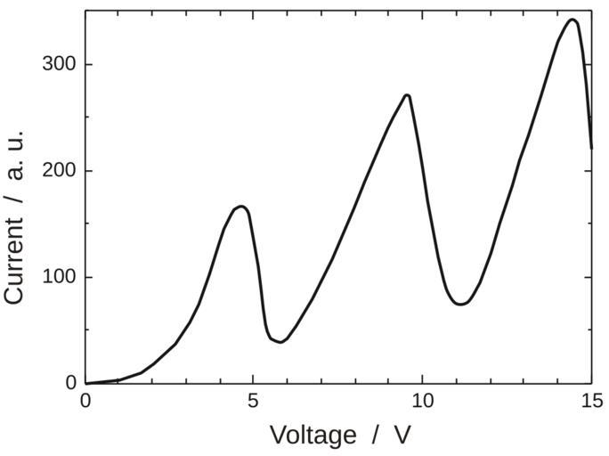 | Keywords: Franck-Hertz en.svg Dependence of the anode current upon the voltage in the 1914 Franck-Hertz experiment The tube temperature was about 115 C <ref> cite journal J Franck Hertz G à ber Zusammenstöße zwischen Elektronen und Molekülen des Quecksilberdampfes und die Ionisierungsspannung desselben Verhandlungen der Deutschen Physikalischen Gesellschaft 1914 16 457 “467 A translation of this paper is given in cite book Boorse Henry A Motz Lloyd The World of the Atom 1 46 The Quantum Theory is Tested 766-778 Basic Books 1966 534667 </ref> Wikipedia contributor Ahellwig Redrawing of a figure from the original 1914 paper of Franck and Hertz Measured data points in the original graph have been removed See cite web Auszüge aus der Originalarbeit von Franck und Hertz 1914 http //leifi physik uni-muenchen de/web_ph12/originalarbeiten/franckhertz/original htm http //web archive org/web/20091130224501/http //leifi physik uni-muenchen de/web_ph12/originalarbeiten/franckhertz/original htm 2009-11-30 Franck also used this figure in his Nobel Lecture which is available in English translation at cite book Nobel Lectures Physics 1922-1941 Elsevier Transformation of Kinetic Energy of Free Electrons into Excitation Energy of Atoms by Impacts Franck James 1965 http //www nobelprize org/nobel_prizes/physics/laureates/1925/franck-lecture pdf 2006 reflist Experiment of Franck and Hertz |