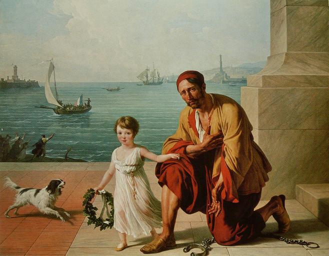 | Keywords: François-André Vincent - Libération des esclaves d'Alger.jpg Allégorie de la libération des esclaves d'Alger par Jérôme Bonaparte oil canvas cm 159 204 Institution Staatliche Museen Kassel Livre de Pierre Rosenberg Poussin Watteau Chardin David - Peintures françaises dans les collections allemandes XVIIe - XVIIIe siècles Galeries nationales du Grand Palais Paris 18 avril - 31 juillet 2005 Paris Réunion des musées nationaux 2005 ISBN 978-2-7118-4914-7 1806 Creator François-André Vincent Other versions PD-old-100 François-André Vincent Jérôme Bonaparte Slaves in art 19th-century allegorical paintings Museumslandschaft Hessen Kassel 1806 paintings People with dogs in art Flower crowns in art Taken with Panasonic Lumix DMC-TZ2 Algiers in art 19th-century oil on canvas paintings in Germany 19th-century men looking at viewer in art People with watercraft in art People with water in art non-contact Slavery in Islam |