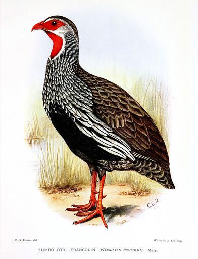 Keywords: FrancolinusHumboldtiDavies.jpg Pternistis afer humboldtii Peters Pternistis afer swynnertoni Sclater 1921 Rooikeelfisant geskilder deur C G Finch-Davies Red-necked spurfowl by C G Finch-Davies http //archive org/stream/cu31924001576226 page/n134/mode/1up Horsbrugh Boyd 1912 The game-birds and water-fowl of South Africa/ Witherby Co London 1912 Creator Claude Gibney Finch-Davies PD-old-auto-1923 1920 Pternistis afer Claude Gibney Finch-Davies The game-birds and water-fowl of South Africa 1912 |