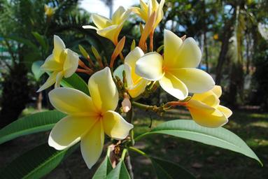 Keywords: frangipani plumeria yellow flower tropical nature blossom bloom plant floral fragrant petal garden spring botanical green tree exotic flowering landscaping