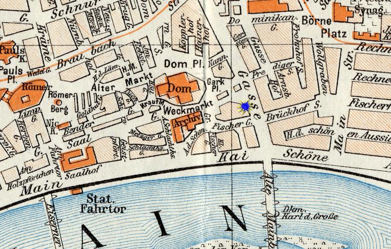 Keywords: Frankfurt Altstadt-Position-Fuersteneck.jpg en Frankfurt on the Main Position of the house Fuersteneck as seen on a map of the Altstadt Old Town de Frankfurt am Main Lage von Haus Fürsteneck auf einer Karte der Altstadt Meyers Großes Konversations-Lexikon Ein Nachschlagewerk des allgemeinen Wissens Sechste gänzlich neubearbeitete und vermehrte Auflage Bibliographisches Institut Leipzig und Wien 1902 “10 Bibliographisches Institut 1904 Haus Fürsteneck Maps from Meyers Konversationslexikon PD-old Bibliographisches Institut |