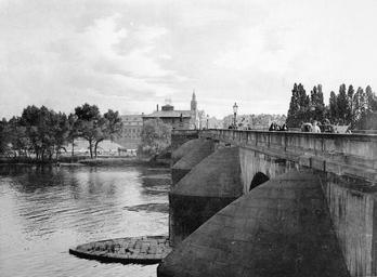 | Keywords: Frankfurt Am Main-Fay-BADAFAMNDN-Heft 26-Nr 309-1911-Bruecke von Ecke der Fahrgasse gesehen.jpg Follows de Heft 26 Tafel 309 / Titel auf der Tafel Brücke von Ecke der Fahrgasse gesehen / Originalbeschreibung Zu den Denkmälern der alten Reichsstadt die durch Geschichte und Sage verklärt bestimmt sind für ewige Zeiten im Gedächtnis der Menschen fortzuleben gehört die žrote Mainbrücke Aus Mainsandstein errichtet auf massiven Pfeilern mit kräftigen Vorder- und Hinterköpfen die zwischen dem 5 und 7 Bogen eine architektonisch recht wirksame Ausbuchtung erfahren haben überspannt sie in halbkreisförmigen Bogen aus Quaderschichten den ruhig dahinströmenden Flusslauf Ueber das Alter sind wir nur schlecht unterrichtet Die erste urkundliche Erwähnung der alten Brücke geschieht im Jahre 1222 doch ist mit Sicherheit anzunehmen dass die Erbauung einer Holzbrücke in weit frühere Zeit hinaufreicht Mau kann sich kaum vorstellen dass die ansehnliche Niederlassung um den žSaalhoeff das alte Palatium Ludwigs des Frommen nicht schon sehr bald mit den ausgedehnten Wohnsitzen der Ministerialen in der Sachsenhäuser Gemarkung in direkter Verbindung gestanden hat Allein die Unsolidität des Materials und die rohe Naturgewalt worunter die Menschheit des Mittelalters in ganz anderer Weise zu leiden hatte als wir in unseren Tagen zwangen zu dem kostspieligen Ersatzbau in Stein Doch brachten Mangel an Mittel wie auch die Schwierigkeit geeignete Arbeitskräfte zu finden das monumentale Werk nur langsam voran Man fundierte die Pfeiler unmittelbar mit Hülfe von eichenen Schwellenrosten auf die Flusssohle die nicht etwa wie irrtümlich angenommen wird aus Tonschiefer sondern aus blauem Cyrenenmergel besteht der bei der verstärkten Strömung zwischen den Pfeilern den wachsenden Auskalkungen der Sohle nicht genügenden Widerstand entgegensetzt So wird denn im Laufe des 13 und 14 Jahrhunderts wiederholt von ausgeführten Steinarbeiten an Pfeilern und Schwibbogen berichtet Auch für König Heinrich den Sohn Friedrichs II bildete die Erhaltung der Brücke im Interesse des Reiches einen Gegenstand schwerer Sorge Der aus politischen Gründen vor allem den Städten wohlgesinnte junge Fürst verlieh im Jahre 1235 ein Privilegium zur halben Nutzung der Münze und zum Bezug des zur Reparatur der Brücke nötigen Holzes aus dem Reichswalde Auf das höchste bedroht muss aber die Erhaltung der Brücke um das Jahr 1300 gewesen sein Anders hat es keinen Sinn dass fünfzehn italienische Bischöfe einen Ablass für jene Gläubigen gewähren die zum Bau der vom Hochwasser zerstörten Pfeiler beitrugen Die Brückenbahn bestand zu jener Zeit zum grössten Teil aus Holz und gab dem Bauwerk noch nicht durch die eigene Schwere der gewaltigen Schwibbogen eine Stabilität die allen Unbilden der Witterung bis zum heutigen Tage getrotzt und entgegen den gemachten Einwänden auch für absehbare Zukunft noch trotzen würde Immerhin mag die Brücke im Jahre 1405 wie die Abbildung von dem Schreiber eines Bedebuches zeigt das heutige Aussehen gehabt haben Wenn dennoch aus dem Jahre 1419 berichtet wird dass man an dem letzten Pfeiler gearbeitet habe damit mam fernerhin ždes kostlichen buwes mit holczwercken nit bedarff sondern balken druber leget und druff brückendele so handelt es sich hier um die Beseitigung eines Zustandes den man im Hinblick auf unruhige Zeiten belassen hatte um gegebenen Falles ohne weitere Schwierigkeiten die Verbindung der beiden Flussufer aufzuheben Einen gewissen Schutz gewährte immer noch der über zwei Oeffnungen belassene Brückenbelag aus Bohlen der erst Ende des 16 Jahrhunderts durch Bogen am Sandstein ersetzt wurde Und böse Zeiten zogen für das ehrwürdige Denkmal herauf Im Jahre 1427 sah sich der Rat der freien Reichsstadt genötigt aus Furcht vor den wilden Horden der Hussiten die Bogen der Brücke mit schweren Balken versperren zu lassen Den Einspruch des in seinen Fluss- und Hoheitsrechten sich beschränkt glaubenden Erzbischhofs von Mainz nahm man leicht Etwa 100 Jahre später aber während der Bewegung des Bauernaufstandes der auch in das Maintal hinüber gegriffen hatte pflanzte die ärmere Bevölkerung der Stadt die Fahne der Empörung auf der Brücke auf ohne dass es jedoch zu ernsthafteren Zusammenstössen gekommen war Schlimmer erging es dem Bauwerk im schmalkaldischen Kriege Als das Protestantenheer zur Belagerung der damals in kaiserlichem Besitz sich befindenden Reichsstadt schritt hatte man alle Vorkehrungen zum Schutze des unentbehrlichen Verkehrsweges getroffen Grosse Leinentücher waren auf der Brücke gespannt und die Mühle selbst mit grossen Wollsäcken verstopft um sie während der Zeit der Bedrängnisse in Gang zu halten Der Hauptanschlag zur Zerstörung der Brücke vermittels schweren Geschützes vereitelte der Abschluss des Passauer Vertrages und der damit verbundene Abzug eines Teiles der Belagerungstruppen Kaum weniger ernst war die Lage der Brücke im dreissigjährigen Kriege Auf der Fahrbahn selbst kam es zu heftigem Kampfe und es muss als ein Wunder angesehen werden dass bei dem Geschützfeuer von Ufer zu Ufer wobei 26 Häuser in Asche gelegt wurden die Brücke selbst kaum wesentlichen Schaden erlitt Allein an dem Kruzifix seien wie die Ueberlieferung will noch heute die Spuren von Schwedenkugeln sichtbar Im siebenjährigen Kriege wie im Befreiungskriege hat ein günstiger Stern über der Stadt gewaltet und grössere Verluste ferngehalten Im Sturmjahre 1848 sah die Brücke die letzten kriegerischen Ereignisse die aber Spuren irgendwelcher Art an dem Denkmal nicht hinterlassen haben <br>Wie in Kriegszeiten so stand auch in den Jahren des Friedens die alte Mainbrücke im Mittelpunkt des Interessens der Bewohner Ein gewaltiger Menschenstrom zog jahraus jahrein auf uralten Handelswegen über die Brücke die zur Lebensader des Rhein- und Main-Gaues geworden war Durch besondere Gesetze geschützt bedrohte man einen jeden der auf der Brücke Streit anfing mit dem 