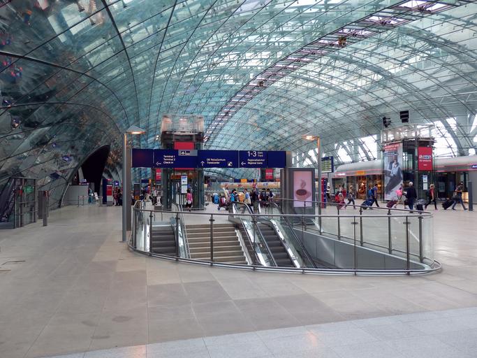 Keywords: frankfurt am main germany airport airport train station hall glass roof wide escalator architecture structure transparency travel modern futuristic