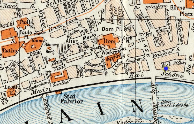 Keywords: Frankfurt Am Main-Schopenhauerhaus-Position-Meyers.jpg en Frankfurt on the Main Position of the Schopenhauerhaus Schopenhauer House as seen on a map of the old town de Frankfurt am Main Lage des Schopenhauerhauses auf einer Karte der Altstadt Bibliographisches Institut Hrsg Meyers Großes Konversations-Lexikon Ein Nachschlagewerk des allgemeinen Wissens Sechste gänzlich neubearbeitete und vermehrte Auflage Bibliographisches Institut Leipzig und Wien 1902 “10 Bibliographisches Institut 1904 PD-old Schopenhauerhaus Maps from Meyers Konversationslexikon |