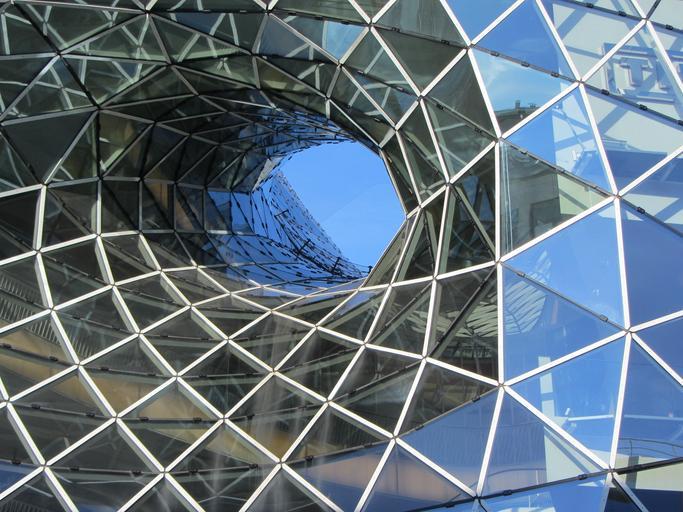Keywords: frankfurt germany building glass design architecture swirling upward view up urban modern