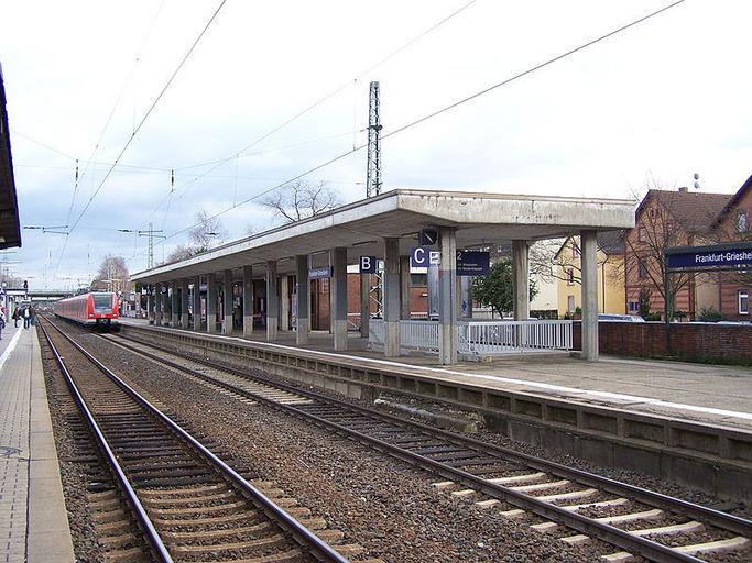 | Keywords: train vehicle railroad sport outdoor road railroad track locomotive 50 06N 8 36E Frankfurt Griesheim station is a railway station located in the Griesheim district of Frankfurt, Germany. Opened 1871. attribution: S. Kasten 50 06N 8 36E Frankfurt Griesheim station is a railway station located in the Griesheim district of Frankfurt, Germany. Opened 1871. attribution: S. Kasten |