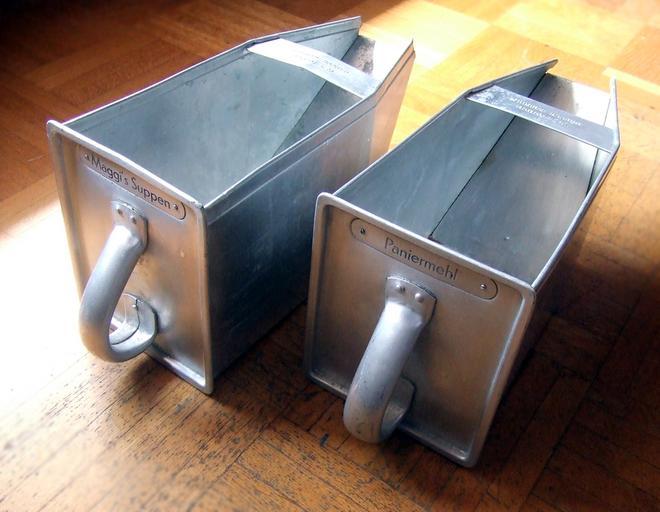 | Keywords: Frankfurt-Kitchen Drawers.jpg Two of the aluminium drawers from the Frankfurt-kitchen or Frankfurter Küche the first built-in kitchen I made the photo myself Christos Vittoratos 2006-08-24 own assumed Christos Vittoratos Schütten der Frankfurter Küche Herstellung Firma Gebr Haarer Frankfurt am Main Entwicklung Firma Gebr Haarer mit dem Hochauamt Frankfurt insbesondere Margarete Lihotzky cite book Kausse Joachim Die Frankfurter Küche in Oikos von der Feuerstelle zur Mikrowelle Haushalt und Wohnen im Wandel Anabas-Verlag 1992 Gießen 96-119 insbesondere Abschnitt 9 3-87038-169-8 Frankfurt kitchen Frankfurter Küche Aluminium objects |