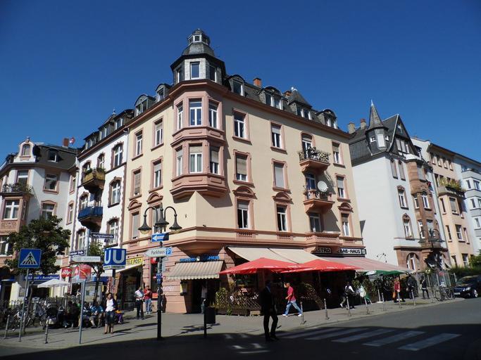 | Keywords: Frankfurt, Leipziger Straße 60.JPG de Frankfurt Leipziger Straße 62/Ecke Markgrafenstraße Mietshaus im Stil der Neorenaissance mit Putzfassade und archivoltierenden Fenstern teilweise durch Vorhangbogen ergänzt Muscheldekor im Bogenfeld Ein Erkertürmchen betont die Ecklage Ehemals Metzgerei Geibel mit Jugendstil-Dekor dann Schmuckwarenhandel Heute Gaststätte mit Freifläche Im ersten Stock ist noch ein historischer Anker für Stromversorgerung der ehemaligen Straßenbahn sichtbar 2012-09-03 own Karsten Ratzke de Images from Wiki Loves Monuments 2012 DE-HE cc-zero Uploaded with UploadWizard Cultural heritage monuments at Leipziger Straße Frankfurt am Main Built in Frankfurt am Main in 1900 |