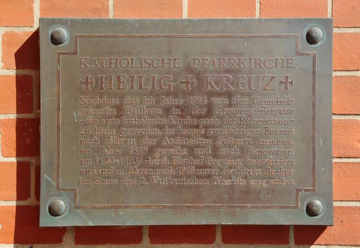 Keywords: Frankfurt Oder Heilig Kreuz 04.JPG en Information plaque at the portal of the Roman Catholic Holy Cross Parish Church Pfarrkirche Heilig Kreuz in Frankfurt Oder Brandenburg Germany de Informationstafel am Portal der römisch-katholischen Pfarrkirche Heilig Kreuz in Frankfurt Oder Brandenburg Deutschland own J -H Janßen 2015-06-05 52 20 611 0 N 14 32 7821 0 E alt 38 7_source exif_heading FoP-Germany Katholische Kirche Zum Heiligen Kreuz Frankfurt Oder Plaques in Frankfurt Oder 2015 in Frankfurt Oder 20150605 Frankfurt Oder June 2015 in Germany 20150605 Frankfurt Oder Photographs taken on 2015-06-05 Frankfurt Oder Bilder von J -H Janßen Taken with Canon EOS 6D and Canon EF 24-105mm F4L IS USM Cc-zero |