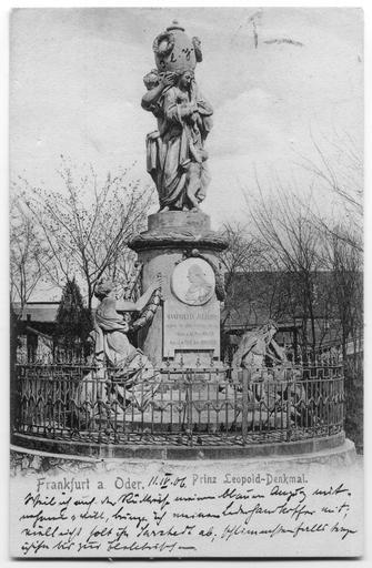 Keywords: Frankfurt Oder Prinz Leupold Denkmal 1906.jpg Prinz-Leopold-Denkmal in Frankfurt Oder Brandenburg Deutschland Postkarten von vor 1906 Prince Leopold Memorial in Frankfurt Oder Brandenburg Germany Postcard from before 1906 scan before 1906 author Memorials in Frankfurt Oder Leopold Duke of Brunswick-Wolfenbüttel Bernhard Rode Destroyed monuments and memorials in Poland Słubice PD-old |