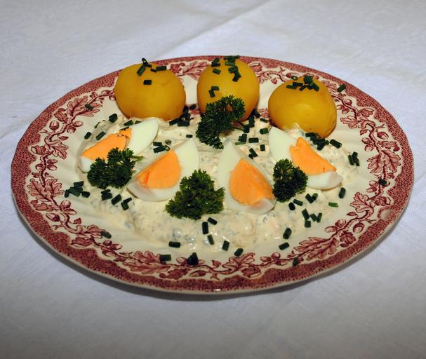 Keywords: frankfurt's green sauce grie soss sauce egg food eat lunch court tasty delicious