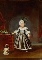Keywords: Frans Luycx - Archduke Karl Joseph with puppies and cockatoo at the age of about one and a half years.jpg Artwork Creator Frans Luycx ca 1651 oil canvas cm 138 5 97 5 Institution Kunsthistorisches Museum accession number GG_3185 object history Aus der kaiserlichen Hofburg in Wien; 1772 in der Galerie nachweisbar credit line 219 number lower right Abgebildete Person Erzherzog Karl Joseph Sohn des Ferdinand III von Habsburg Österreich http //bilddatenbank khm at/viewArtefact id 2403 PD-old-100 DEFAULTSORT 1651; Charles Joseph of Austria Paintings by Frans Luycx in the Kunsthistorisches Museum Portraits of children by Frans Luycx Archduke Charles Joseph of Austria 1650s paintings in Austria 17th-century oil portraits of boys at full length 17th-century portrait paintings in the Kunsthistorisches Museum Paintings of boys' dresses Portrait paintings of boys with dogs Portrait paintings of standing boys Portraits with fruits Tables in portrait paintings 1650s portrait paintings |