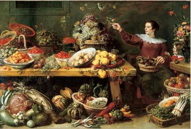 Keywords: Frans Snyders - Still Life with Fruit and Vegetables.jpg Artwork Creator Frans Snyders and Creator Simon de Vos firsthalf other date century 17 Oil on canvas size cm 173 4 256 5 Norton Simon Museum object history credit line accession number http //www nortonsimon org/collections/browse_artist php name Snyders 2C+Frans PD-old-100 Kitchen scenes by Frans Snyders Fruit and Vegetable Stall Flemish paintings in the Norton Simon Museum Kitchen interiors in Flemish genre paintings Paintings of baskets Customers Paintings of vegetables 1601-1650 paintings Flemish still-life paintings in the Norton Simon Museum Paintings by two artists |