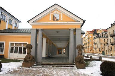 Keywords: František kolonáda 1.jpg Františkovy Lázně in winter time west Bohemia Czech Republic Františkových Lázních západní Čechy own Karelj 2009-01 50 7 2 34 N 12 21 5 38 E Sculptures in Františkovy Lázně Spa buildings in Františkovy Lázně